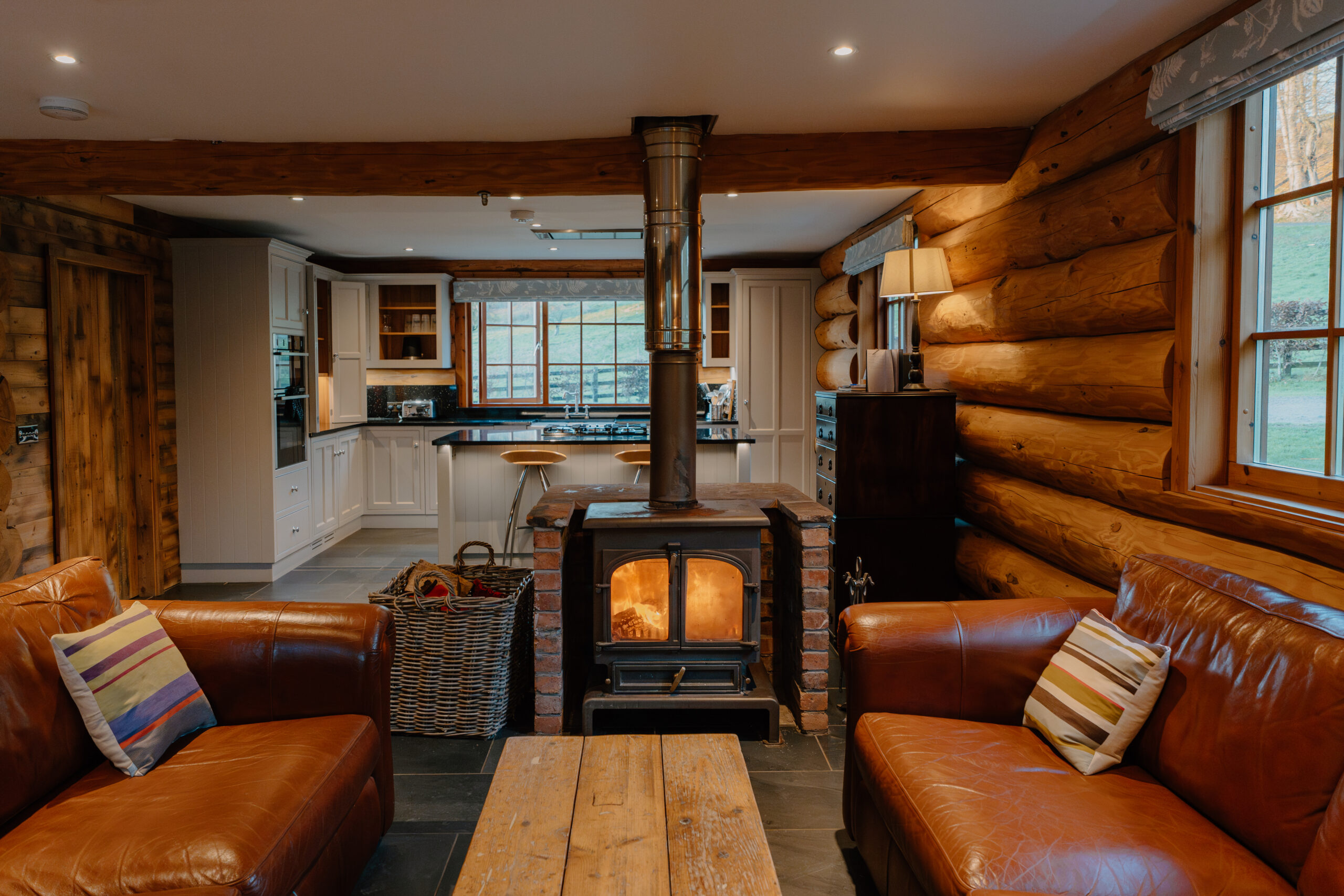 Otter Stone Cabin is dog friendly and is equipped with 4 Super King bedrooms in the open plan living room. Sleeping up to 8 people this is the perfect family holiday, romantic getaway or break with friends. The warm interior will make you feel instantly at home, and relax in the stunning surroundings of complete wilderness.