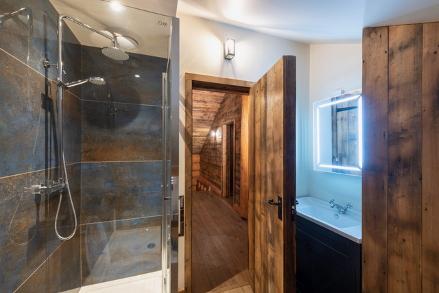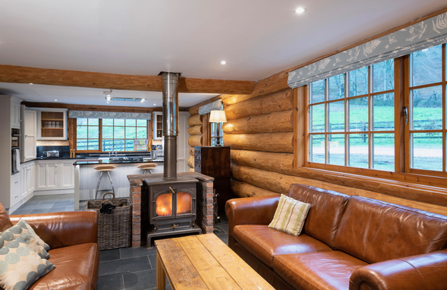 A clear view wood burner in the middle of the open plan living/kitchen area will keep you snug all year round and there is also a hot tub on the decking from which you can watch the river Lyne and try and spot any fish rising or kingfishers going about their day.